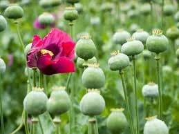 Opium is the naturally occurring ’milk’ that comes from the poppy seed heads containing some 80 alkaloids. It used to be smoked in opium dens as a relaxant.
